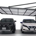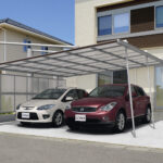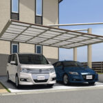 設置条件に応じて柱の位置を2タイプから選べる”ダブルフェース”なカーポート。3本の強靱な柱とアームで屋根をしっかり支える上吊りタイプでダイナミックなデザインが魅力です。2台駐車に対応するワイドタイプで片側支持を実現しました。