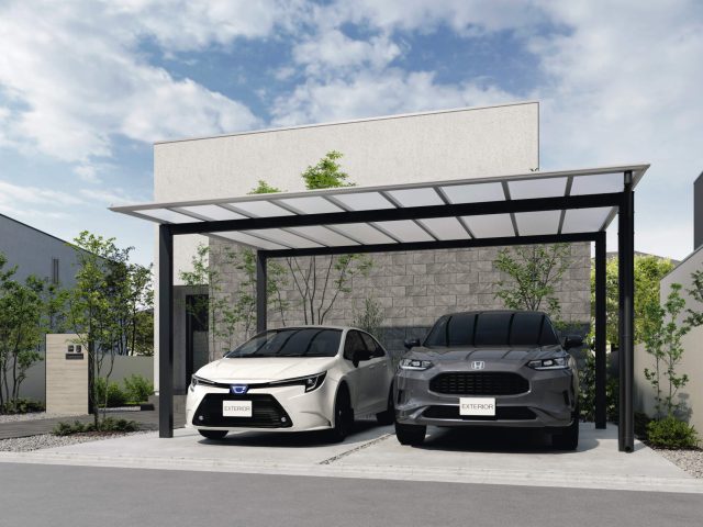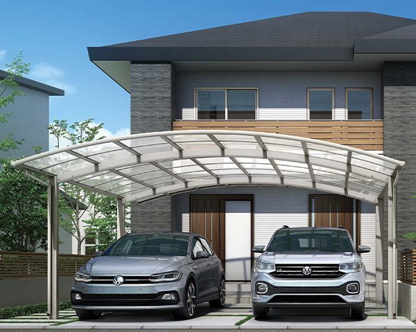 シャープでスタイリッシュなハイデザインカーポート。幅広い敷地対応力も魅力です。