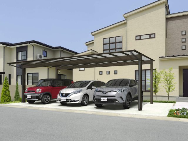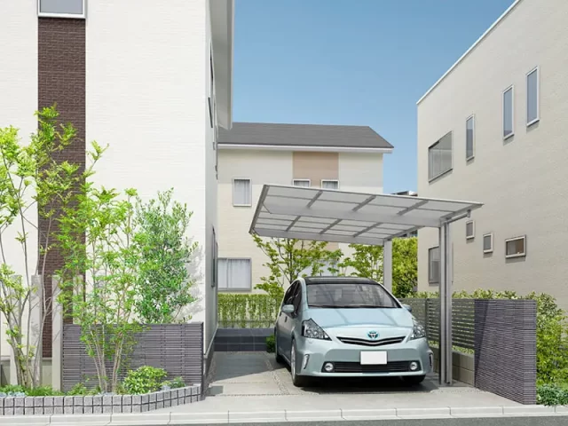 ネスカFは、フラットスタイルの屋根を特長としたLIXILの人気カーポート。用途に合わせて選べる屋根材...