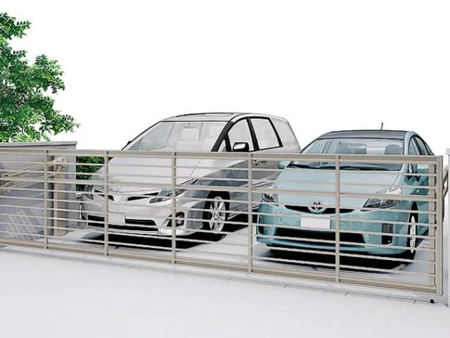 車庫前に使用するゲートです。ゲートが垂直に上がります。電動タイプも選択できます。フェンスとも合わせら...