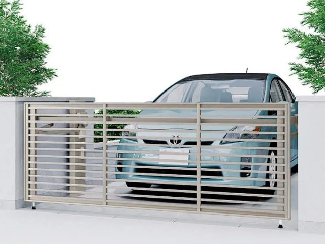 車庫前に使用するゲートです。ゲートが垂直に上がります。電動タイプも選択できます。フェンスとも合わせら...